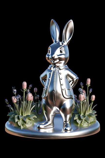 Peter Rabbit in silver with flowers Fictional Children's Character by English Author Beatrix Potter.